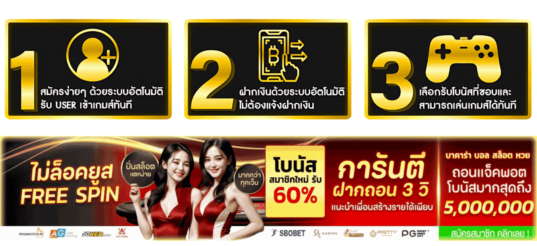 ตอบ : แจกเครดิตฟรีสำหรับสมาชิกใหม่ โบนัสเพิ่มยอดฝากแรก 10% แนะนำเพื่อนรับค่าคอมมิชชั่น และกิจกรรมพิเศษตามเทศกาลต่างๆ